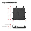The tray features four adjustable retaining arms with grips that can be moved both vertically and horizontally. These arms allow for a custom fit for laptops of varying thickness while not blocking drives or ports. Upgrade your mounting kit with compatible accessories that are not included, such as the RAM® Adjustable Screen Support and RAM® Power Caddy. Integrated 2-hole AMPS mounting locations around the tray perimeter allow for easy attachment of accessories such as printers, handheld devices, or scanners. Verify the full range of vehicle compatibility on the tab above.